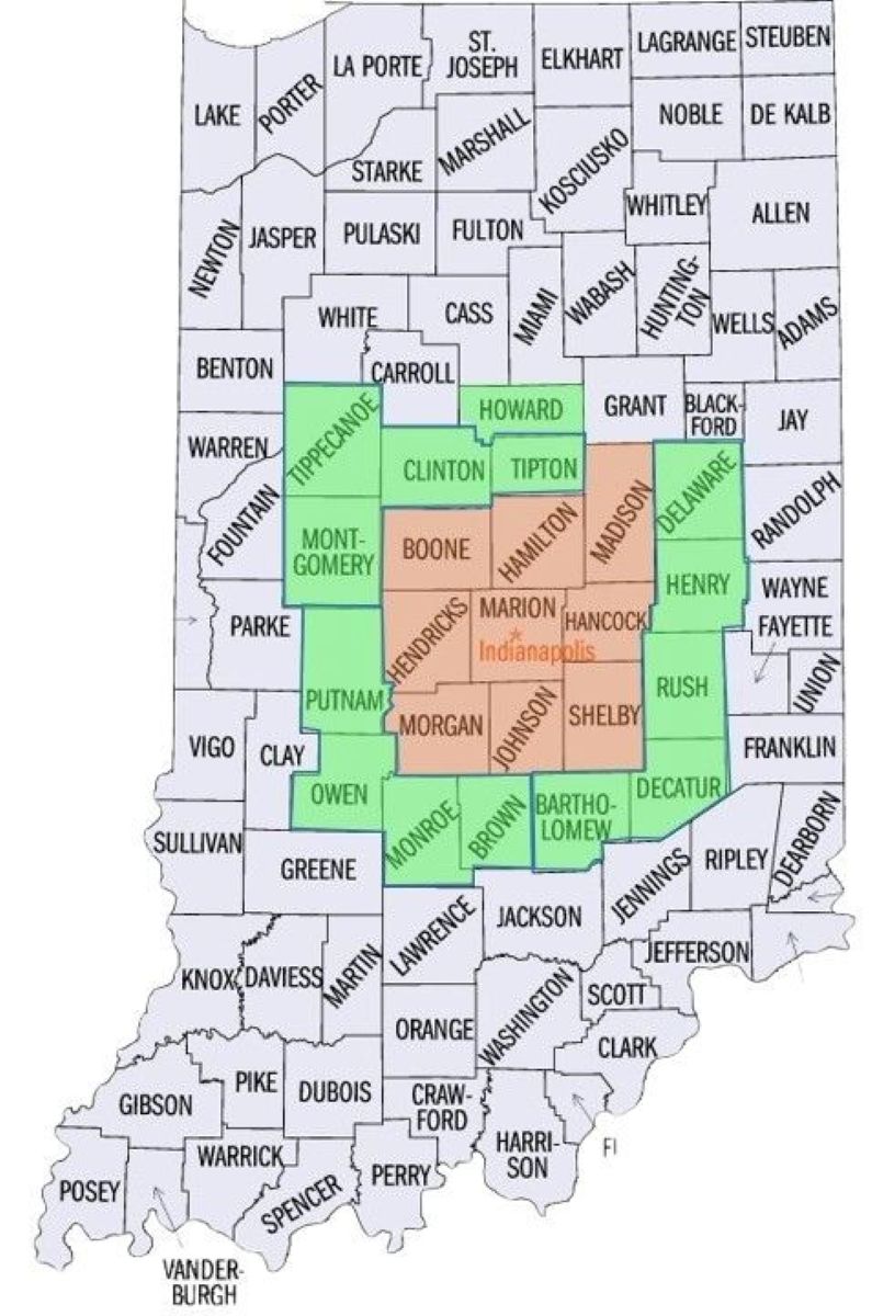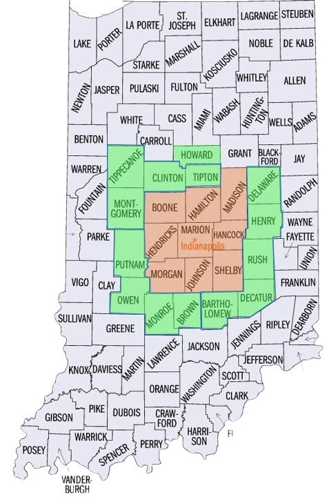 Counties Covered: Marion + counties 2 layers out, plus Howard & Tippecanoe